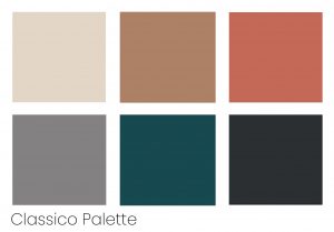 ‘Classico’, the second palette, is a collection of essential and undying colours. This palette includes rich teal, grey, gold and apricot.